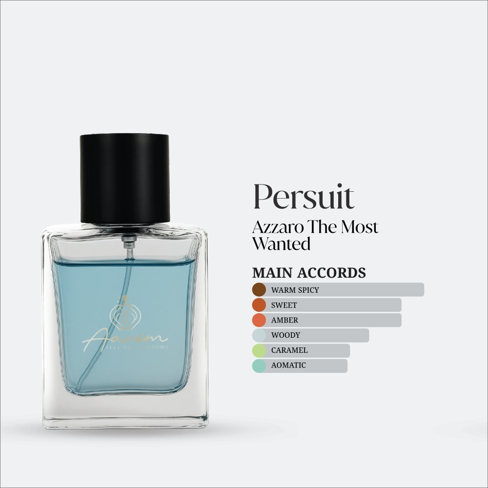 Persuit is an adventurous fragrance that draws its inspiration from the Azzaro Most Wanted line and is aimed towards the most daring and bold individuals. It starts with an energetic spicy blend of amber, warm sweetness, green apple, ginger, and more. It is sweet and fiery all together. Loveable notes of tobacco and amber wood shift into center stage while the deep base notes of vanilla, leather, and caramel seal in the bliss. The fusion of woods and warmth creates a soft spice scent and is more than an achievement fragrance. This composition is destined to accompany anyone on their purposeful endeavors without boundaries. Without question, “Persuit—wear your goals and aspirations”.